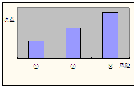 某公民把自己的闲置资金用于投资,共选择了股票、金融债券和存款储蓄三种投资方式。右图是对三种投资方式特点的描述,①、②、③应分别是( )