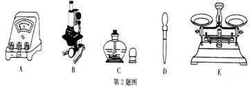 4.写出下列实验所需主要仪器的名称(只写一种)。