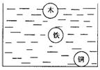 有木球、铁球和铜球(ρ木<ρ铁<ρ铜)静止在水中时的位置,如图所示,则可以确定肯定是空心的是 ( )