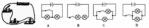 C.四灯并联,开关接在干路上 D.四灯并联,开关接在其中一个支路上