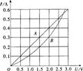 在某一温度下,两个电路元件A和B中的电流与两端电压的关系如图所示。