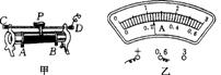 在用电流表和电压表测小灯泡工作电阻的实验中,连接滑动变阻器的导线有一根已接在变阻器的D接线柱上,如图甲所示。为了使变阻器的滑片向左滑动时电路中的电流增大,则连接变阻器的另一根导线应接在 接线柱(填“A”、“B ”或“C”)上。若已测得灯泡两端的电压为3 V,通过灯泡的电流如图乙所示,则知电流大小为 A,由此可算得灯泡的工作电阻为 Ω。