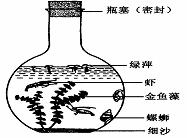 29.右图所示,是某校研究性学习小组的同学模拟池塘生态系统制作的一个封闭生态瓶(瓶中生物生长良好),请据图回答: