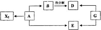 23.(10分) 以A为原料在化学工业上可制得多种物质,其中的一部分如图所示。A、B、D、E、G的焰色均呈黄色,A是由同周期元素组成的离子化合物,其水溶液呈中性,B、D、E的水溶液均呈碱性。常温下,X2为黄绿色气体。当G转化为D或E时,同时生成能支持燃烧的无色气体Y2。