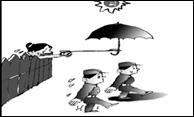 (2)下面是一幅名为《“小祖宗”军训》的漫画,请你评一评它的名字好在哪里。(2分)