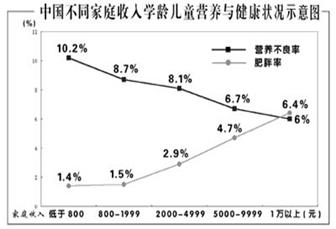 8].5月20日是中国学生营养日。下面是国家有关部门根据调查数据而制成的图表,请用简洁的语言概括图表所反映的主要信息。(2分)