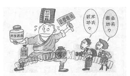 22.观察下面一幅针对某寺庙公开拍卖活动的漫画,写一段100字左右的话,说明画面内容及其寓意。(7分)
