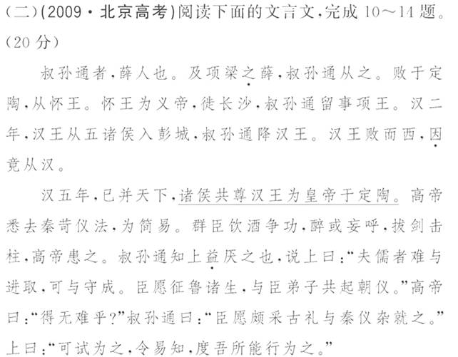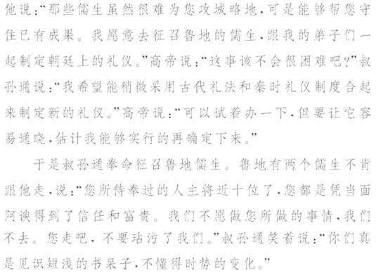 [解析]选D。“鲁地儒生皆固守气节”不合文意,“鲁有两生不肯行”,其余三十人均应征去京。