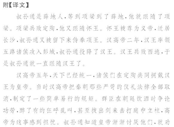 D.鲁地儒生皆固守气节,坚决不与叔孙通合作。