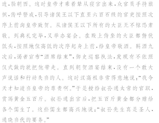 C.叔孙通帮助朝廷建立了一套庄重威严的礼仪。