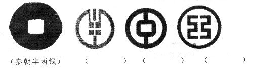 (1)同学们收集到一些图案:秦朝半两钱、中国银行、中国工商银行与中国农业银行的徽标。他们进行了一番探究,知道了秦半两钱外圆内方取义天圆地方之意,它在钱币发展史上具有重要意义。根据你的知识积累判断出下面图标各是哪家银行的徽标(填写在括号内),并探究出这些徽标流露出的共同信息。(3分)