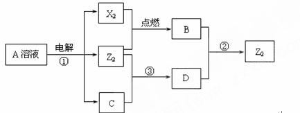 (3)D溶液呈碱性的原因是(用离子方程式表示)________________________________; D是很多漂白剂中含有的有效成分,这些产品不能与洁厕灵(含有有机酸和无机酸)一起使用,其原因就是在常温时能发生与反应②相似的反应。某校的学生在实验室利用反应②的原理来制备纯净、干燥的Z2,仪器装置如图所示(夹持固定装置的仪器已略去)。