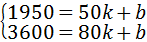 根据题意,当x=50时,y=1950;当x=80时,y=3600