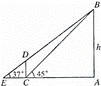 25、(2011•南京)如图,某数学课外活动小组测量电视塔AB的高度.他们借助一个高度为30m的建筑物CD进行测量,在点C处测得塔顶B的仰角为45°,在点E处测得B的仰角为37°(B、D、E三点在一条直线上).求电视塔的高度h.