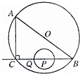 ∴PD=PQ,即圆心P到直线AB的距离等于⊙P的半径,![]()
