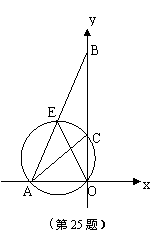 25. 已知,如图,过点A、O的圆与y轴相交于一点C,与AB相交于一点E,直线AB的解析式为y=kx+4k,过点A、O