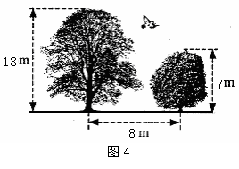 8、如图4,校园内有两棵树,相距8米,一棵树树高13米,另一棵树高7米,一只小鸟从一棵树的顶端飞到另一棵树的顶端,小鸟至少要飞( )