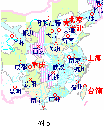 9、为维护祖国统一,遏制台独,我国将制定“反分裂法”,作为维护台海形势稳定的法律框架,图5是我国地图的一角,用刻度尺、量角器测量可知,台湾大约在北京(★)的什么方向上( )