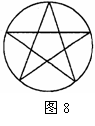 13、中华人民共和国国旗上的五角星的画法通常是先把圆五等分.然后连结五等分点而得(如图8)。五角星的每一个角的度数是___。
