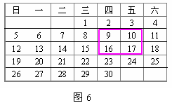 11、图6是2005年6月份的日历,如图中那样,用一个矩形圈住4个数,仔细观察圈住的4个数字,看一看有什么规律,如果被圈的四个数的和为40,则这四个数中最大的一个为 。