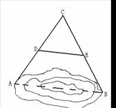 点C,找到AC,BC的中点D、E,并且测得DE的长