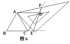 (2)当三角板的两边分别与菱形的两边BC、CD的延长线相交于点E、F时(图b),连结EF,判断△AEF的形状,并证明你的结论。