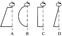 1.如左图所示的圆台中,可由右图中的( )图形绕虚线旋转而成.