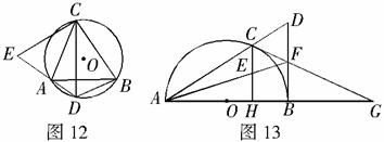 上一点,CH⊥AB于点H,直线AC与过B点的切线相交于点D,E为CH中点,连结AE并延长交BD于点F,直线CF交AB的延长线于点G.