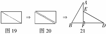 ,再将这两张三角形纸片摆成如图21的形状,但点