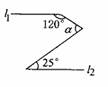 如图, l1∥l2,∠1 = 105°,∠2 =