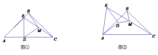 (1)若点D在边AC上,点E在边AB上且与点B不重合,如图①,探索BM、DM的关系并给予证明;
