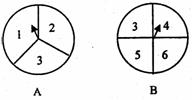 22、(7分)有两个可以自由转动的均匀转盘 A , B .转盘 A 被平均分成 3 等份,分别标上1,2,3 三个数字;转盘 B 被平均分成 4 等份,分别标上 3 ,4,5 , 6 四个数字.有人为甲、乙两人设计了一个游戏规则;自由转动转盘 A 与 B ,转盘停止后,指针各指向一个数字,将指针所指的两个数字相加,如果和是 7 ,那么甲获胜,否则为乙获胜.你认为这样的游戏规则是否公平?如果公平,请说明理由:如果不公平,怎样修改游戏规则才能使游戏对双方公平?