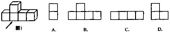 3. 在图1的几何体中,它的左视图是------------------------------------------- ( )
