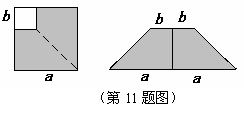 11.如图,在边长为a的正方形中剪去一个边长为b的小正方形(a>b),把剩下的部分拼成一个梯形,分别计算这两个图形阴影部分的面积,验证了公式_____________.