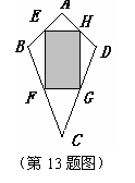 13.某市光明中学风筝厂准备购进甲、乙两种不同花色、幅面宽度相同的布料生产一批形状如图所示的风筝,点E、F、G、H分别是四边形ABCD各边的中点.其中阴影部分用甲种布料,其余部分用乙种布料(裁剪两种布料时,均不计余料).若生产这批风筝需要甲种布料50 m,那么需要乙种布料__________m.