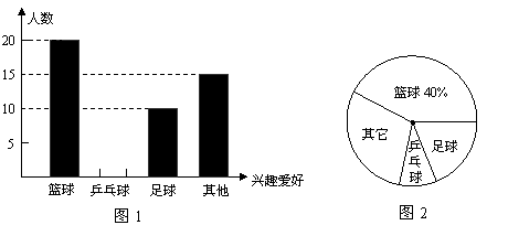18.为响应国家要求中小学生每天锻练1小时的号召,某校开展了形式多样的“阳光体育运动”活动,小明对某班同学参加锻炼的情况进行了统计,并绘制了下面的图1和图2,请在图1中将“乒乓球”部分的图形补充完整.