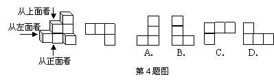 4.左下图是由若干个小正方形所搭成的几何体及从上面看这个几何体所看到的图形,那么从左边看这个几何体时, 所看到的几何图形是( )
