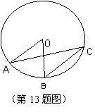 13.如图,点A、B、C在⊙O上,AO∥BC,∠AOB = 50°,