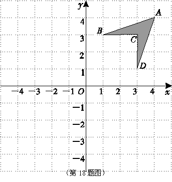 19、(9分)如图,在平面直角坐标系中,将四边形ABCD称为“基本图形”,且各点的坐标分别为A(4,4),B(1,3),C(3,3),D(3,1).