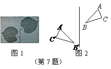 7. 把一个图形先沿着一条直线进行轴对称变换,再沿着与这条直线平行的方向平移,我们把这样的图形变换叫做滑动对称变换.在自然界和日常生活中,大量地存在这种图形变换(如图1).结合轴对称变换和平移变换的有关性质,你认为在滑动对称变换过程中,两个对应三角形(如图2)的对应点所具有的性质是……………………( )