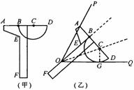 22.如图(甲)是一把特殊的尺--“三等分角仪”,可以用来解决三等分角的问题。其结构是:A、 B、 C、 D 在同一条直线上,AB与半圆的半径CB、CD相等,且EF垂直于AD于B。