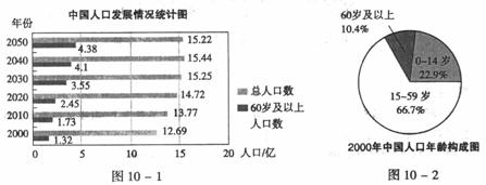 (1)2000年,中国60岁及以上人口数为 亿,15-59岁人口数为 亿(精确到0.01亿);