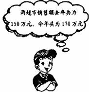 解:设去年A超市销售额为x万元,B 超市销售额为y万元,