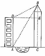 例16(2004 四川)如图,小丽的家住在成都市锦江河畔的电梯公寓AD内,她家的河对岸新建了一座大厦BC,为了测得大厦的高度,小丽在她家的楼底A处测得大厦顶部B的仰角为60°,爬上楼顶D处测得大厦顶部B的仰角为30°。已知小丽所住的电梯公寓高82米,请你帮助小丽计算出大厦高度BC及大厦与小丽所住电梯公寓间的距离AC.
