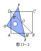 2、(06河北)如图13-1,一等腰直角三角尺GEF的两条直角边与正方形ABCD的两条边分别重合在一起.现正方形ABCD保持不动,将三角尺GEF绕斜边EF的中点O(点O也是BD中点)按顺时针方向旋转.