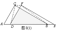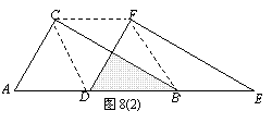 (1) 如图8(1),△DEF沿线段AB向右平移(即D点在线段AB内移动),连结DC、CF、FB,四边形CDBF的形状在不断的变化,但它的面积不变化,请求出其面积.