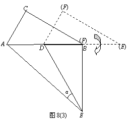 (3)如图8(3),△DEF的D点固定在AB的中点,然后绕D点按顺时针方向旋转△DEF,使DF落在AB边上,此时F点恰好与B点重合,连结AE,请你求出sinα的值.