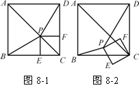 如图8-1,已知P为正方形ABCD的对角线AC上一点(不与A、C重合),PE⊥BC于点E,PF⊥CD于点F.
