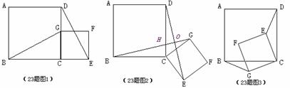 18、(义乌市08)如图1,四边形ABCD是正方形,G是CD边上的一个动点(点G与C、D不重合),以CG为一边在正方形ABCD外作正方形CEFG,连结BG,DE.我们探究下列图中线段BG、线段DE的长度关系及所在直线的位置关系: