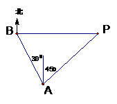 18、(岳阳市07)一海上巡逻艇在A处巡逻,突然接到上级命令,在北偏西30°方向且距离A处20海里的B港口,有一艘走私艇沿着正东方方向以每小时50海里的速度驶向公海,务必进行拦截.巡逻艇马上沿北偏东45°的方向快速追击,恰好在临近公海的P处将走私快艇拦截住.如图所示,试求巡逻艇的速度。